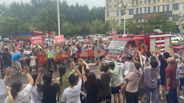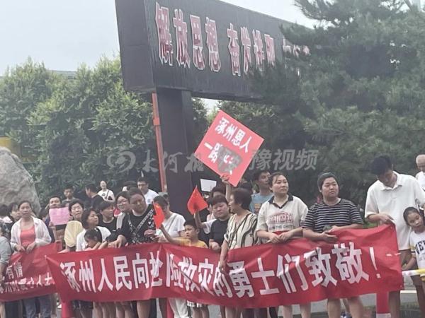 数千涿州群众高速口自发送别外地救援队
