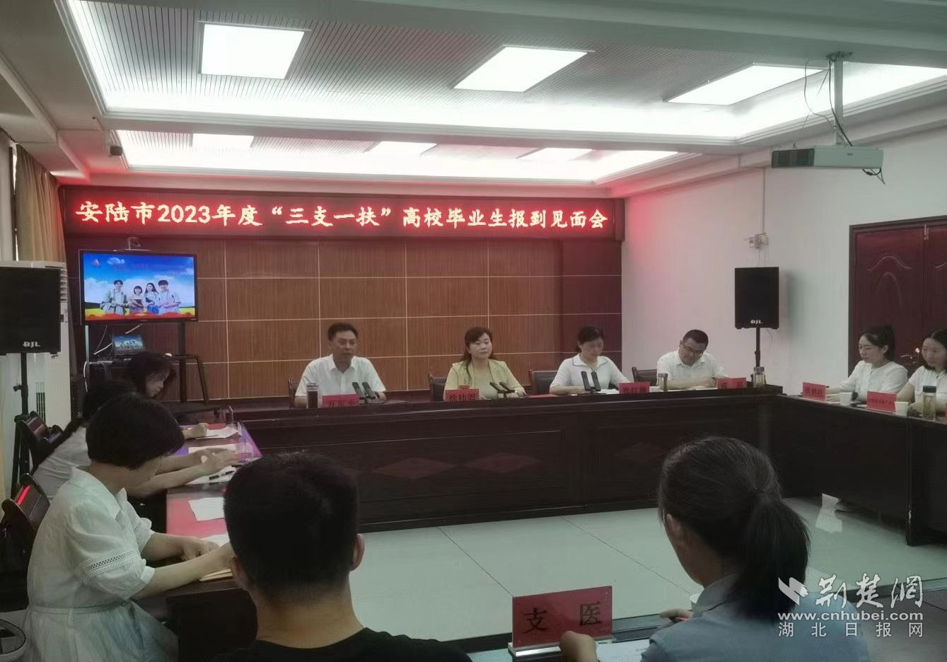 荆楚网(湖北日报网)讯(通讯员刘壮 袁嘉欣)炎炎夏日,展现奋斗的热情;时序更替,留下奋斗的足迹;闪闪红星,点燃奋斗的理想。7月31日,安陆市召开2023年度“三支一扶”高校毕业生报到见面会,开启30名“三支一扶”高校毕业生履职第一步。安陆市政府分管副市长,市人社局、团市委等“三支一扶”服务单位代表和该市2023年度全体“三支一扶”大学生参加会议。