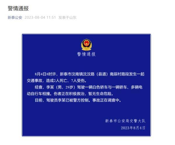 8月4日中午,新泰市公安局就此发布一则警情通报: