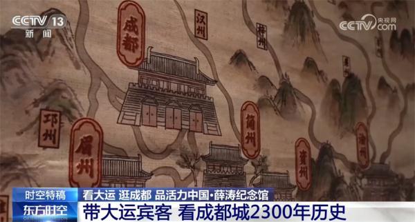 离开了天府人文艺术图书馆,我们现在来到了位于望江楼公园里面的薛涛纪念馆。这两处都是此次大运会当中,成都市向各国运动员、教练员所推荐的城市文明交流路线当中的一站。而现在这个薛涛纪念馆除了介绍薛涛的生平和他的诗文以外,也是成都城市历史的一个迷你纪念馆。在这我们可以看到,公元前311年东周时,张仪、张若筑成都城,而在这之后,成都这座城市的名字就再也没有改变过。历史上的成都虽然地处中国的西南,但是这里拥有富庶的天府之国,拥有璀璨夺目的蜀锦蜀绣,同时还有很多的文人墨客所留下来的文化痕迹。