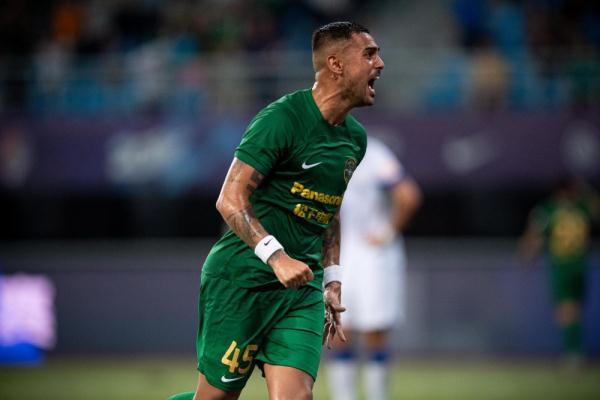 8月4日,浙江队球员莱昂纳多在进球后庆祝。