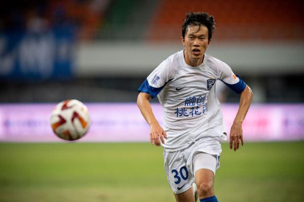 8月4日,武汉三镇队球员谢鹏飞在比赛中进攻。