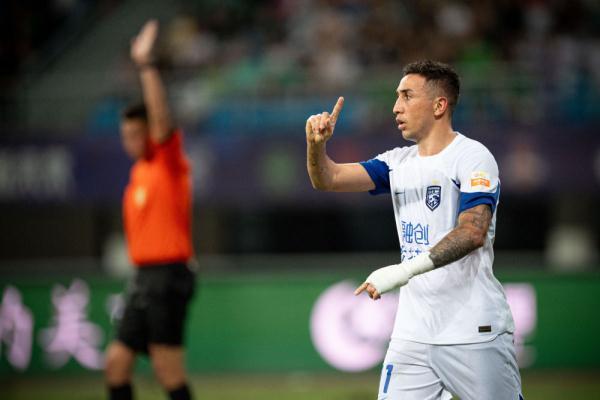 8月4日,在自己的进球被判越位后,武汉三镇队球员戴维森表达不满。