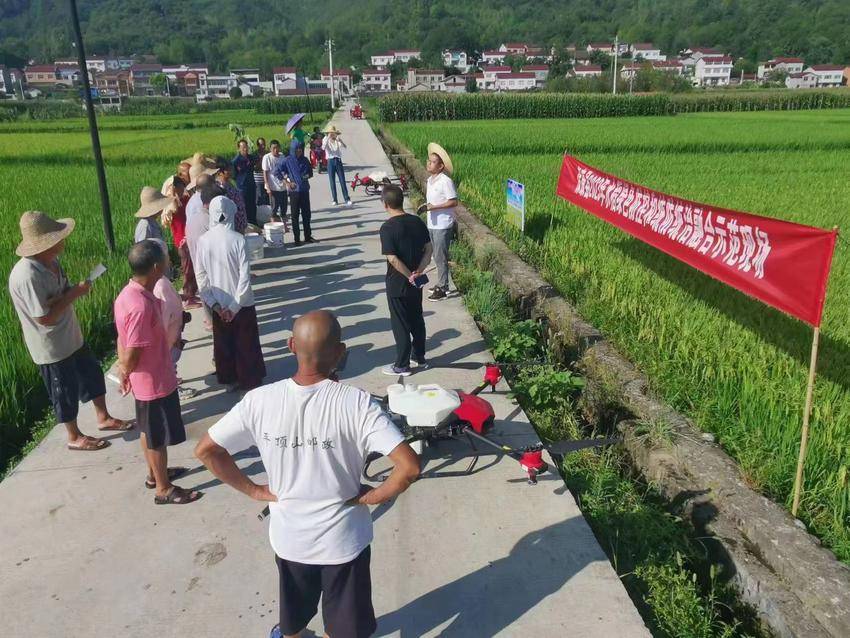 在推动农技人员下基层加强田间技术指导管理同时,该中心还积极推广“植保无人机”等新技术、新产品在“虫口夺粮”工作中的示范应用。