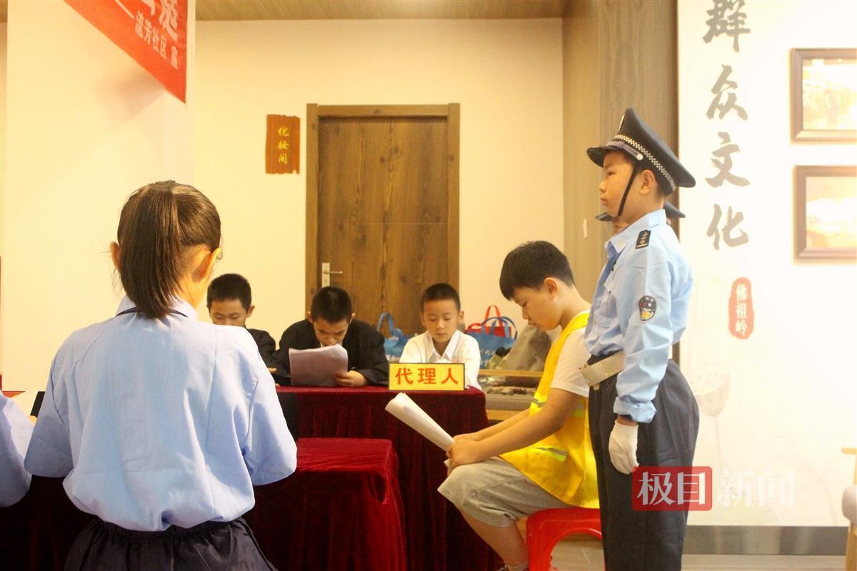 “模拟法庭”假设审理一个抢劫的案子,社区小朋友覃炎彬扮演被告。“平时比较贪玩,孩子的本性就是活泼好动的,喜欢跑跑跳跳,起初小老师们嗓子都喊哑了都管不住。”覃炎彬的家长那天特意参加了“旁听”,发现在志愿者的引导下,孩子将被告的角色演得十分生动,“表现出自己做错了很后悔的样子。”