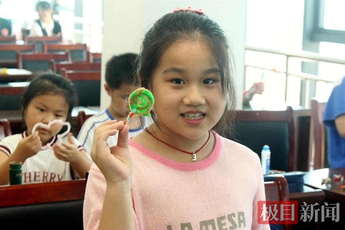 小朋友向志愿者展示自己制作的“棒棒糖”