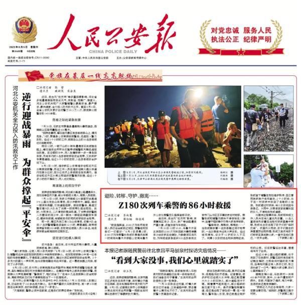 7月30日12时50分,乌鲁木齐至北京西的Z180次列车因前方暴雨停靠丰沙线安家庄站避险,为躲避泥石流风险,列车班组紧急组织918名旅客向北京市门头沟区王平镇安家庄村转移。乘警张威和辅警刘振华不停穿梭在人群中,扯着干哑的嗓子引导大家有序转移。
