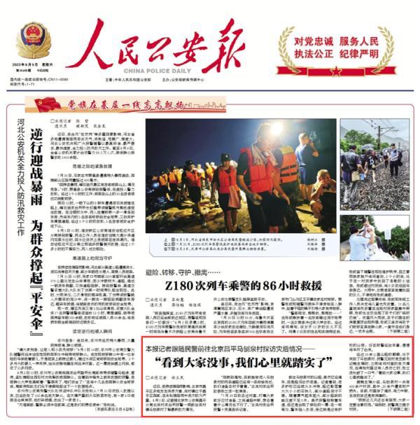 连续的强降雨虽然已经过去,但是救援依然在持续,昌平分局民警积极参与到灾后的整修工作中,并配合当地相关部门对辖区群众进行救援。至发稿时记者了解到,流村镇马刨泉、老峪沟、禾子涧、黄土洼、长峪城5个村,道路和电力、供水、通讯已经恢复。