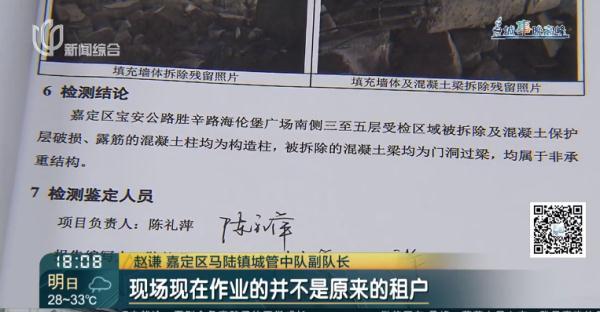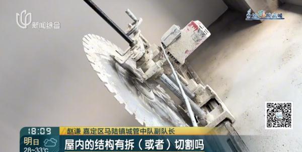 赵谦嘉定区马陆镇城管中队副队长:2019年时,就有一家单位租用了3到10层的房屋,在里面进行内部拆改,当时就有周边群众反映他们破坏承重结构,我们马陆城管中队及时介入了。通过现场核查,委托第三方进行现场检测,最后判断为不存在破坏承重结构。