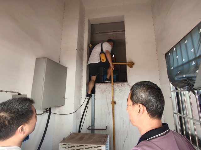 湖北日报客户端讯(通讯员刘晓丹、杨彩云)为确保辖区小区电梯稳定运行,消除电梯安全隐患,有效预防和减少电梯安全事故,8月2日,赤壁市赤马港街道北站社区连同赤壁市特种设备安全监督检验研究中心工作人员在长城花园小区开展电梯安全隐患排查工作。