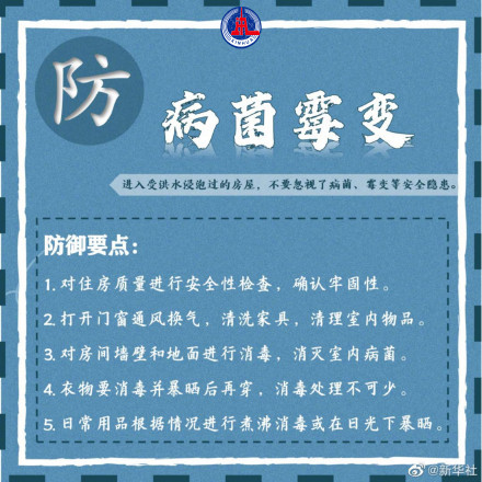 暴雨易引发地质灾害、污染、疫病等次生灾害,即使暴雨和洪水退去也不可掉以轻心。不要喝生水及地下水、不吃被洪水浸泡过的食物,洪水过后房屋要彻底清洁和消毒……