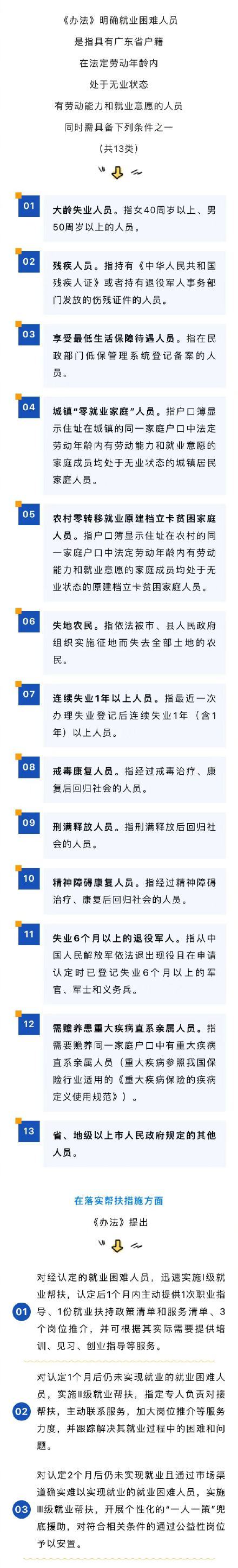 日前,广东省人力资源社会保障厅印发《广东省就业困难人员认定管理办法》,于8月1日起施行。《办法》明确就业困难人员是指具有广东省户籍在法定劳动年龄内处于无业状态有劳动能力和就业意愿的人员,同时需具备下列条件之一(共13类)。都有哪些条件,一起来看看~(广东发布)