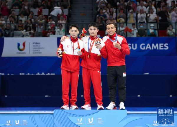 8月5日,在成都举行的第31届世界大学生夏季运动会体操项目男子吊环决赛中,中国选手兰星宇以15.366分的总成绩夺得冠军。