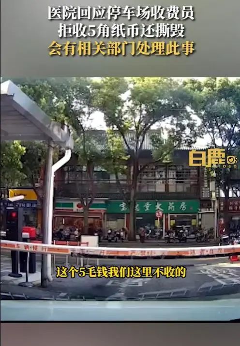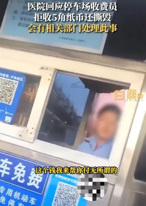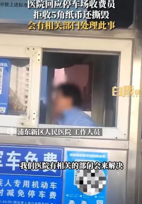 8月4日,一则“收费员拒收5角纸币一把撕毁”的视频在网上引起关注。视频内容显示,事发在上海浦东新区人民医院。网友爆料称在某医院停车场出口缴纳停车费时,被收费员拒收5角纸币,并将5角人民币当场撕毁。男子问其原因时,收费员称“我们不收,没有为什么,这个钱我帮你付,无所谓的”。