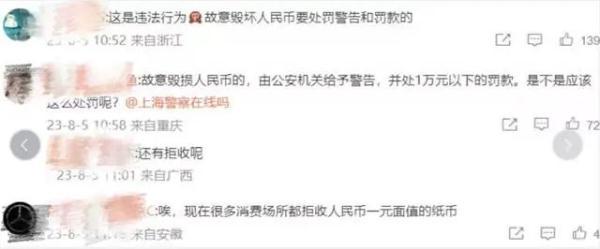 记者查阅《人民币管理条例》第四十二条,故意毁损人民币的,由公安机关给予警告,并处1万元以下的罚款。