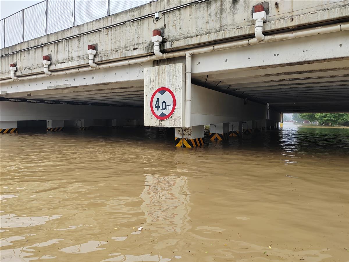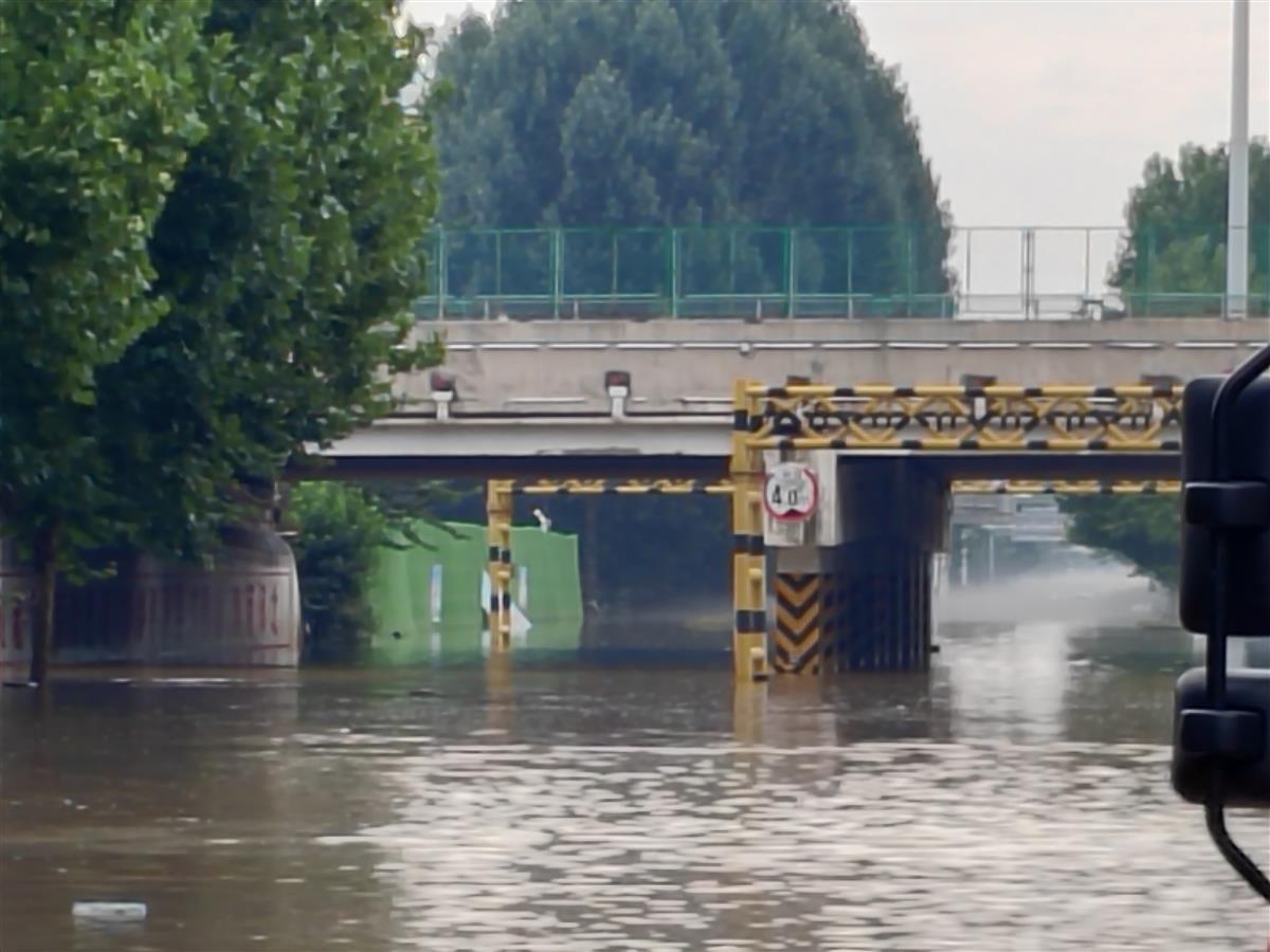 路边一个小区的地库口有多条排水管正在向路面上排水,一位居民告诉记者,目前小区内地面积水已经排干,正在排地库里的水。洪水来临前,不少车主都将车从地库挪出,停放在单元楼前和临街店铺门口,不料路面水深没过大腿,不仅地库被淹,地面上的车也没能幸免。