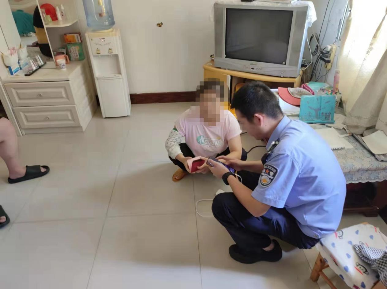 隔蒲水陆派出所民警在其家中找到欧阳某,拦截劝阻其去银行转账。 通讯员 供图