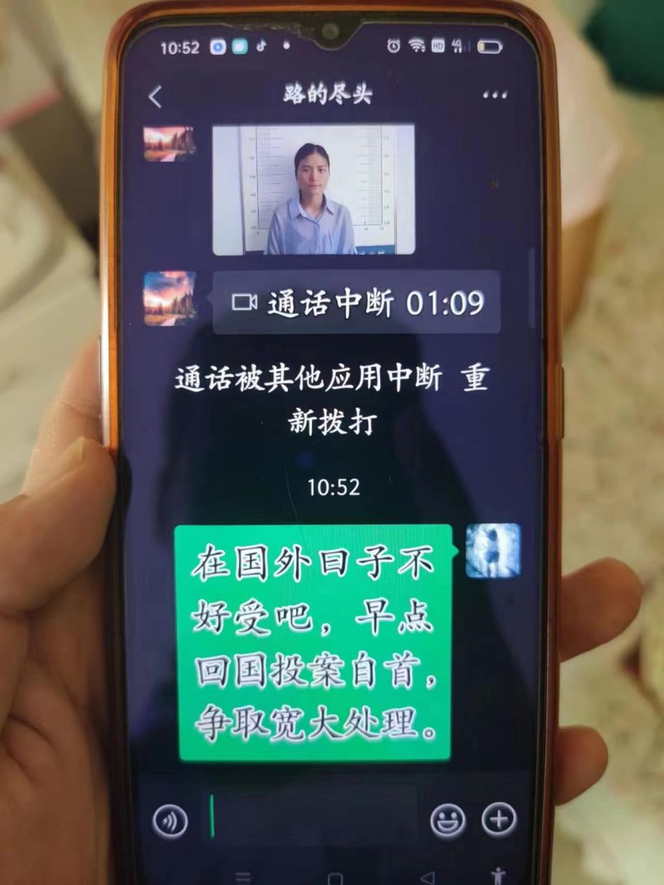 隔蒲水陆派出所民警劝诫诈骗分子回国投案自首。 通讯员 供图