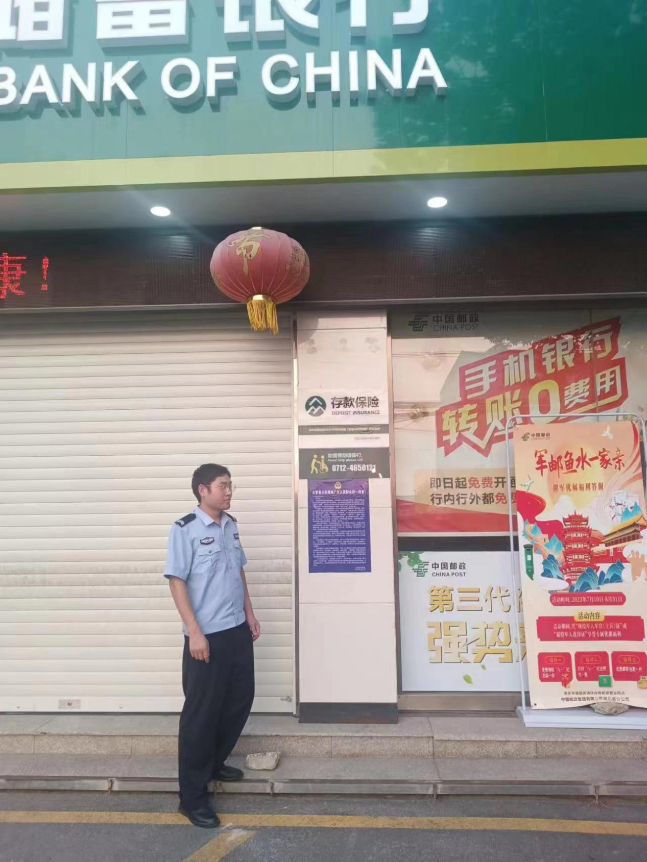 隔蒲水陆派出所民警在银行营业点蹲守寻找欧阳某。 通讯员 供图