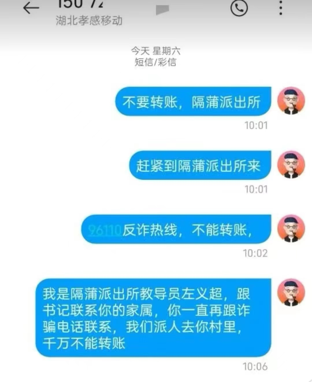 荆楚网(湖北日报网)讯(通讯员韩朋朋)“你一直在跟诈骗分子联系,请不要相信、不要转账,我们马上去找你”云梦县公安局隔蒲水陆派出所教导员左义超跟疑似被诈骗人员欧阳某发短信联系到。