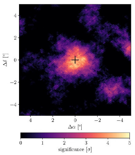 在《物理评论快报》最新发表的一项研究中,美国密歇根州立大学的研究人员报告称观察到迄今为止从太阳探测到的最高能量的光。墨西哥高海拔水切伦科夫天文台(HAWC)科学家团队还发现,这种伽马射线比预期的更亮。观测结果表明,这些伽马射线的能量达到了万亿电子伏特(TeV),与大型强子对撞机中撞击在一起的粒子的能量相近。(科技日报记者张佳欣,图片来源:墨西哥高海拔水切伦科夫天文台合作团队)