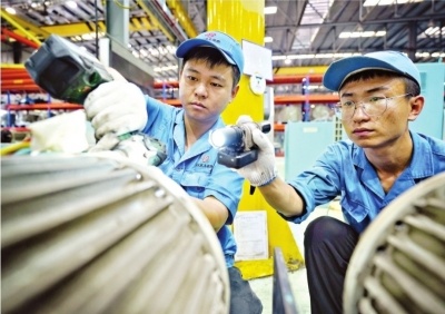 辅机组副工长邓忠和组员正在为机车牵引通风机电机更换轴承,随着风机的使用时间增长,电机轴承会因长期受力和摩擦而出现磨损。邓忠说,这只是电机中的一个部件,如果整个电机检修完成需要3天左右。
