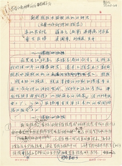 蒋亦元关于“割前脱粒”技术的研究手稿。