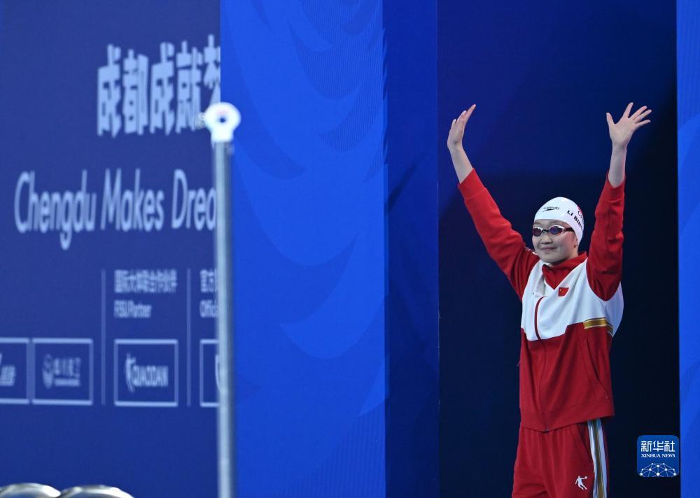 当日,在成都举行的第31届世界大学生夏季运动会游泳女子800米自由泳决赛中,中国选手李冰洁以8分30秒74的成绩夺得冠军。