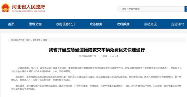 8月5日,省交通运输厅连夜下发通知,要求收费公路经营管理单位通过开通应急专用通道等方式,切实保障抢险救灾任务车辆免费优先快速通行,并在服务区为抢险救灾任务车辆和人员优先提供就餐、加油、汽修等服务。