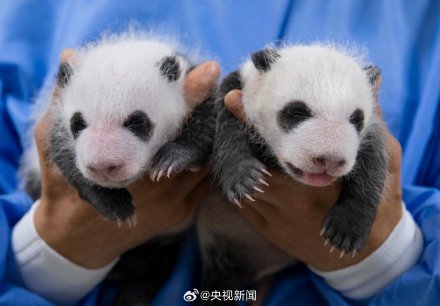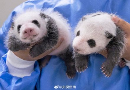 旅韩大熊猫爱宝、乐宝的双胞胎宝宝满月啦~小的那只还伸出舌头卖萌,可可爱爱姐妹俩体重都已超过1公斤,为减轻爱宝的负担,宝宝由妈妈和饲养员轮流抚养~怎么区分福宝的两个妹妹?仔细看,姐姐的背部纹路更接近V字型,而妹妹的背部纹路更接近U字型;姐姐目前体长更长一些,妹妹的腹部更宽一些,看起来更加圆润~快记下来!(总台记者张昀)