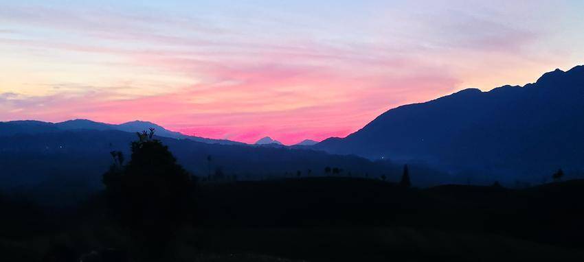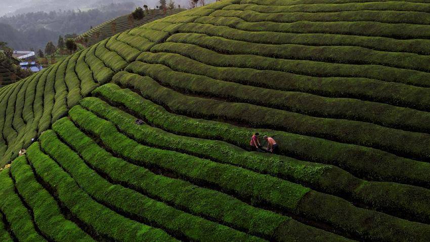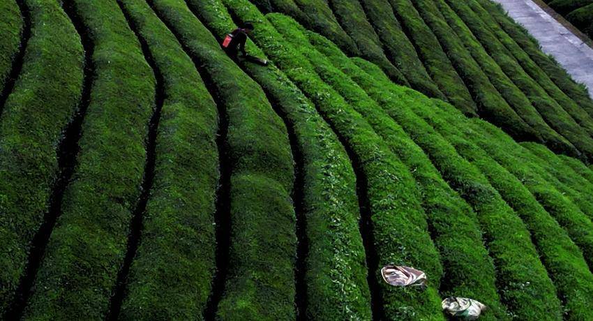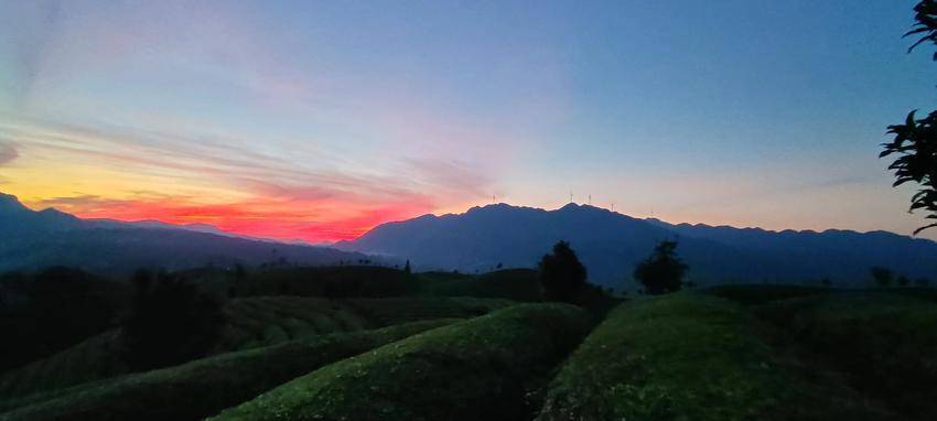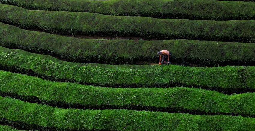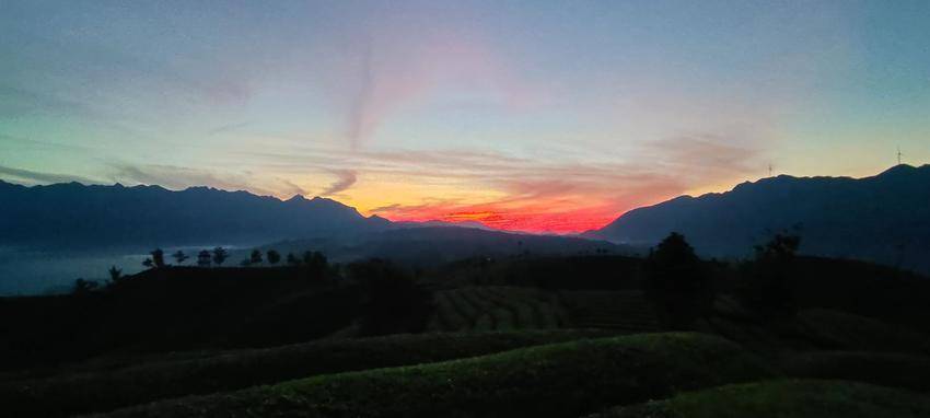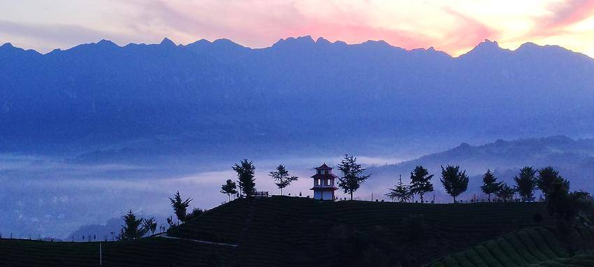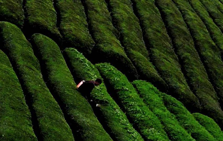 湖北日报客户端讯(通讯员向冰舟、杜雪平)“莫道君行早,更有早行人”。鹤峰走马木耳山的茶农比我们更早,我们乘车刚到山根,就有人把装茶的电动车停靠在三岔路口,打着手电钻进茶园。霞光、月光和他们戴的头灯交相辉映,采茶不用人工,早已被机械茶剪所代替,嗡嗡的电机声在重峦叠翠的茶山回荡,奏响了一派茶园丰收交响曲。