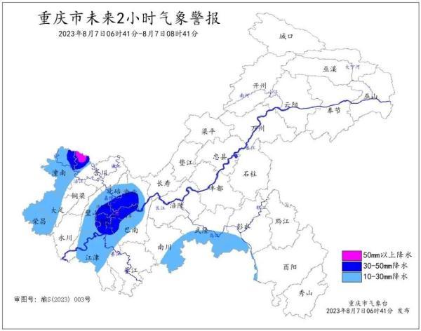 其中,沙坪坝区、大渡口区、九龙坡区、两江新区、重庆高新区、渝北区、北碚区、巴南区、潼南区、璧山区、江津区将出现小时雨强30毫米以上短时强降水;渝中区、江北区、南岸区、合川区将出现小时雨强50毫米以上短时强降水。