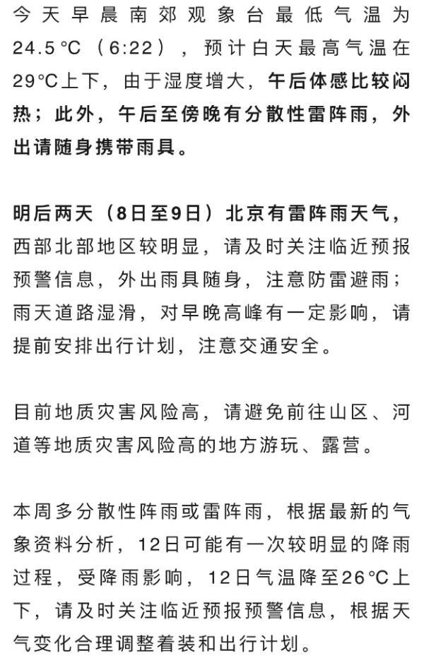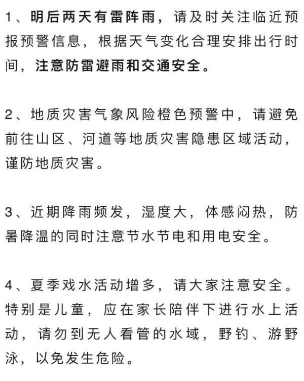 目前处于主汛期,降雨频发,且降雨时多伴有雷电、局地短时强降水和短时大风等强对流天气,户外远离高大建筑物,广告牌,临时搭建物或大树,注意防风和防雷避雨。