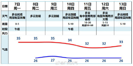 气象台预计,8月8日-9日,受副高加强影响,粤西市县多云间晴,有分散雷阵雨局部大雨,广东其余市县晴到多云,局部雷阵雨;大部分市县最高气温35℃~37℃。8月10日,受切变线影响,粤北、珠江三角洲中北部市县多云转中雷雨局部大雨或暴雨,高温范围缩小。广州,8月7日,受南风分量加大影响,高温伴雷雨;8月8日-9日,受副高加强影响,高温明显,最高气温35℃~36℃。(文/广州日报·新花城记者:叶卡斯图/@广州天气)
