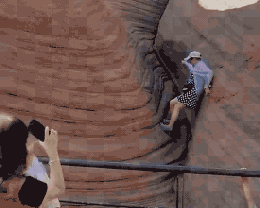 近日,网友视频爆料称在陕西榆林靖边县波浪谷游玩,发现一女子翻围栏踩丹霞地貌拍照。视频中,该女子站在岩石的凹陷处,两手扶着山壁,不停调整姿势,反复踩踏,下方还有同行人指导动作。