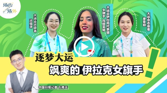 中国日报记者石甫天在大运会寻找翠绿色的途中,遇到了大运会开幕式中伊拉克代表团的女旗手玛丽亚姆。