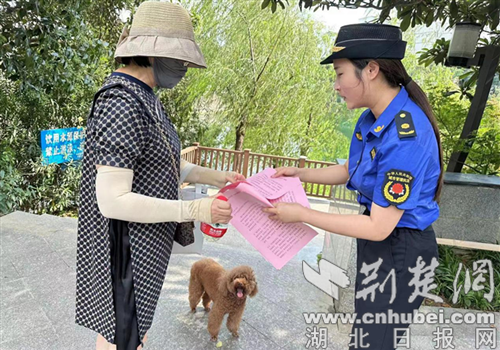 荆楚网(湖北日报网)讯(通讯员 彭枫)“刚才一只大狗突然跑过来,把我孩子都吓哭了,遛狗不拴绳,看到狗我们躲都来不及。”在广场散步的王女士说。“这位大婶请将您的爱犬戴上犬链,避免犬伤人等意外发生”,正在执勤巡逻的城管人员对一位“犬主人”友情提示道。
