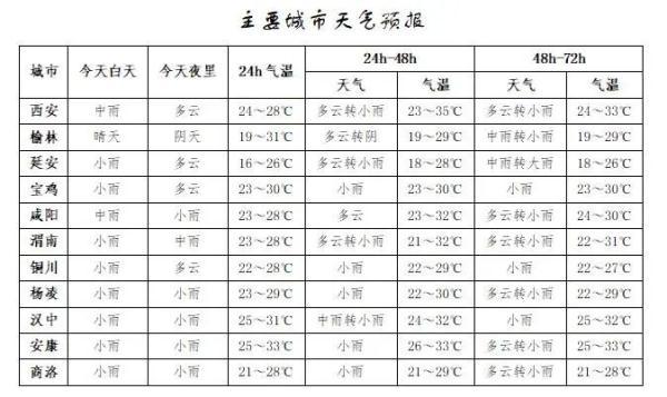 陕西未来几天天气预报