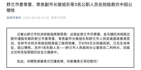 一段舒兰公职人员失联牺牲前