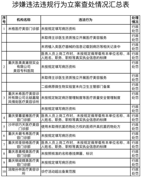 8月7日,重庆市卫生健康行政执法总队发布2023年重庆市医疗美容机构“你点名我监督”交叉执法检查活动结果,本次检查中,22家被检查机构中有10家被立案查处,占被检查单位的45.45%。