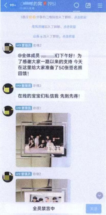 日前,佛山南海黄岐的14岁的小宜在家刷手机时,突然被拉入一个陌生的某偶像团体粉丝QQ群。进群后,小宜就看到了群主发出的“可以免费领取偶像亲笔签名照”的消息。