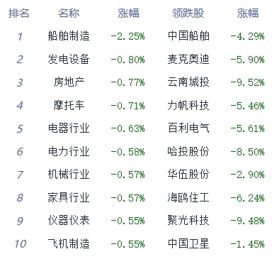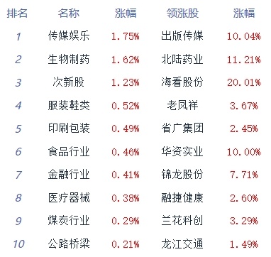板块方面,医药商业、中药、贵金属、传媒、化学制药等涨幅居前,房地产服务、汽车整车、非汽车交运、金属新材料、厨卫电器等跌幅居前。