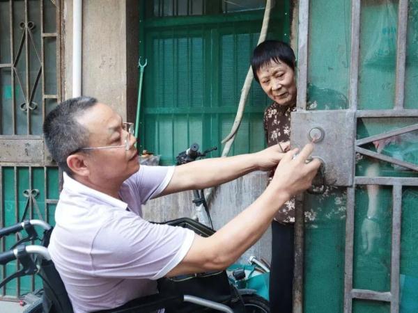 前些年,得知居民王大爷被锁在家门外,厨房还没关火,宁兴年连忙骑上代步车赶去,迅速开锁。