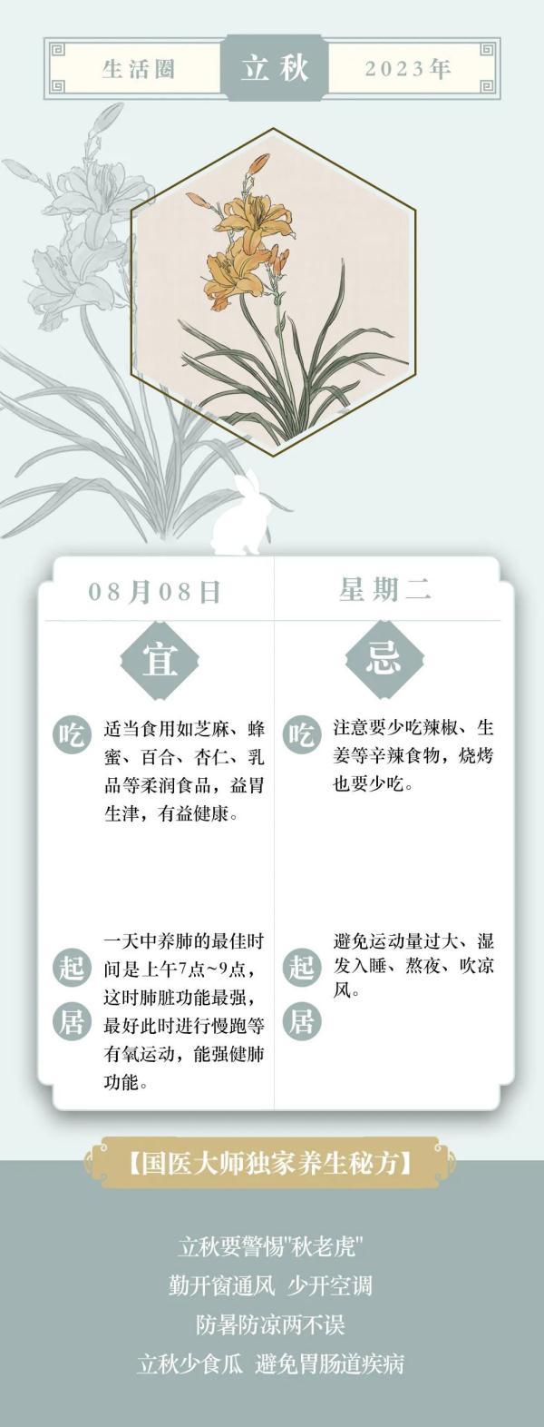 立秋要警惕“秋老虎”,勤开窗通风,少开空调,防暑防凉两不误。