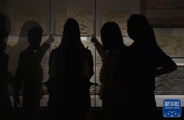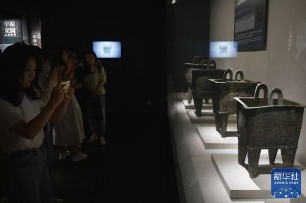 ↑8月7日,参加集体采访活动的媒体记者在位于郑州市的河南博物院参观采访。