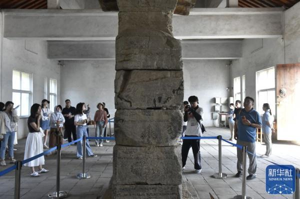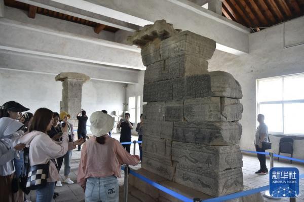 ↑8月7日,参加集体采访活动的媒体记者参观河南登封“天地之中”历史建筑群中的周公测景台。