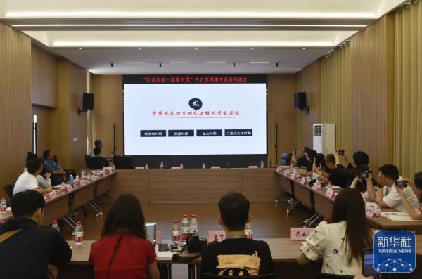 ↑这是在河南省文物考古研究院举行的“行走河南·读懂中国”考古发现集中采访座谈会现场(8月7日摄)。