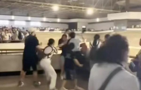 视频显示,一男子用瓶子砸人,现场有工作人员劝阻。有目击者称,事发7日上午11时许,冲突中有人受伤,还有医务人员来到现场。