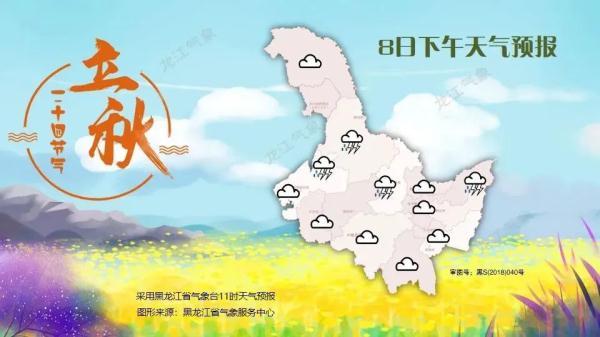 黑龙江省气象台2023年8月8日11时发布8日下午至11日白天全省天气预报:
