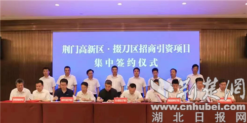 荆楚网(湖北日报网)讯(通讯员 周宗国、胡甜甜)8月8日,荆门高新区·掇刀区举行招商引资项目集中签约活动。22个产业链项目集中签约,总投资181.05亿元。市政府副市长、荆门高新区党工委书记、掇刀区委书记周俊杰,市招商局局长张龙,荆门高新区党工委副书记、管委会常务副主任、掇刀区委副书记、区长王玮,荆门市招商大使鲍天林等出席签约仪式并见证签约。